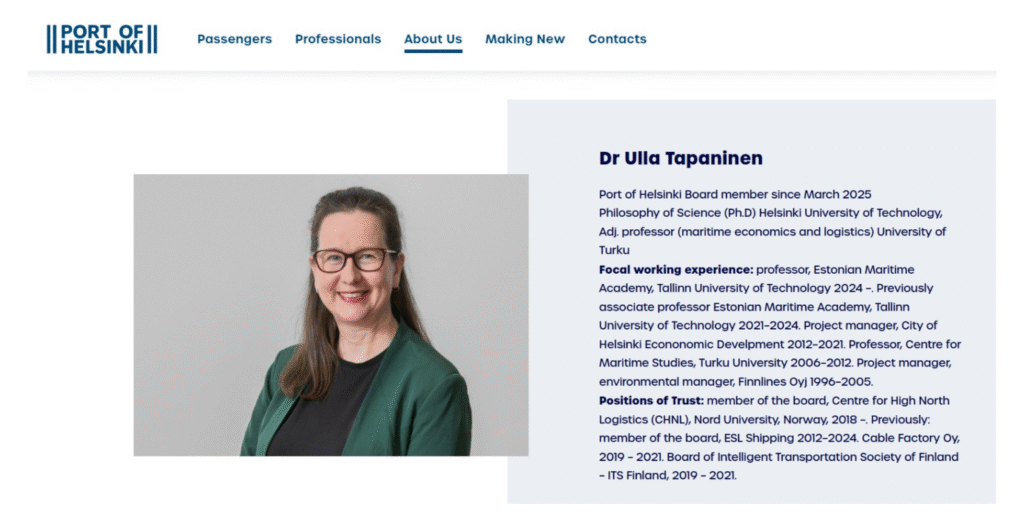 The Port of Helsinki is one of the busiest passenger ports in Europe and a vital cargo hub in the Baltic Sea. Prof. Ulla Tapaninen’s appointment strengthens the links between applied research and practical decision-making in maritime infrastructure and sustainability.